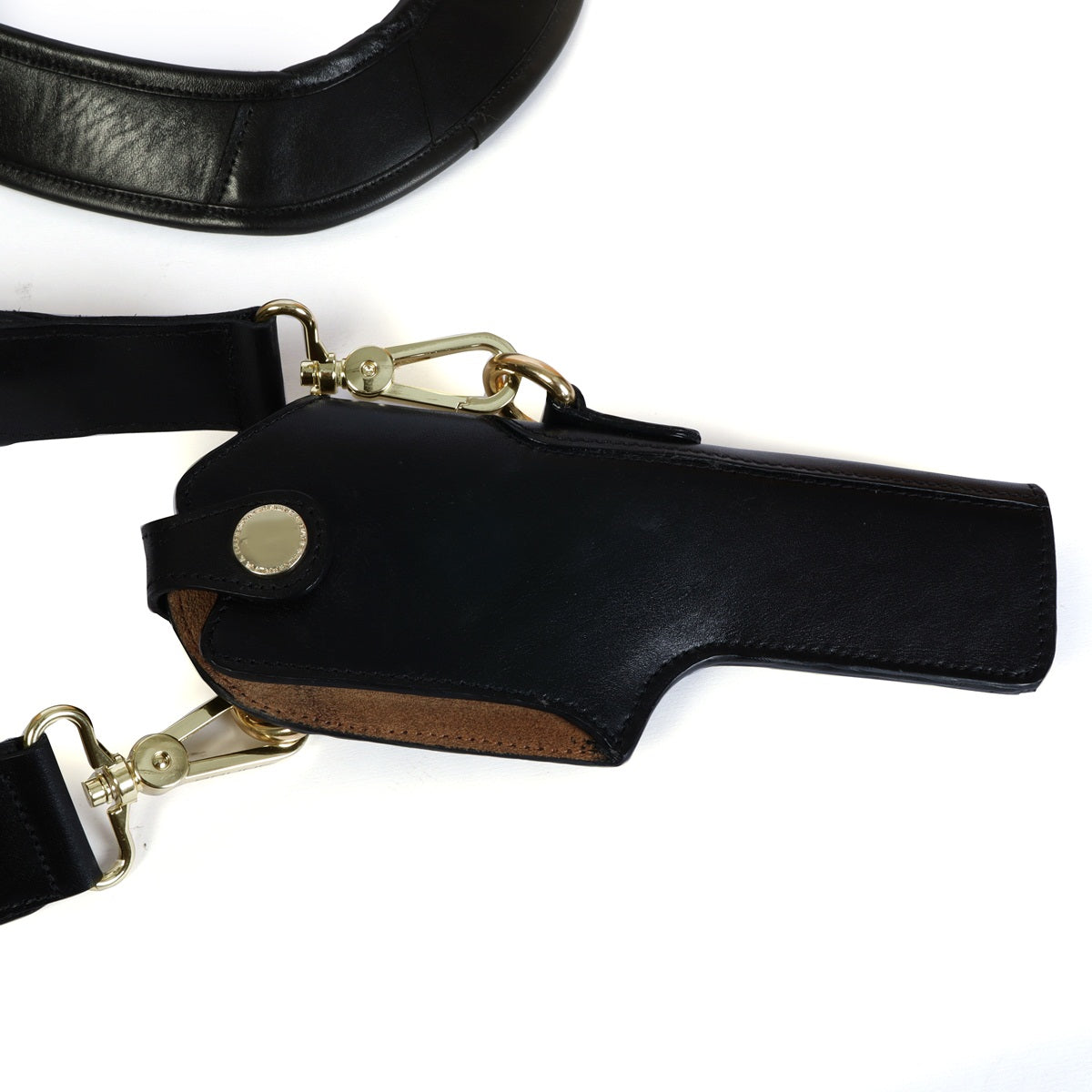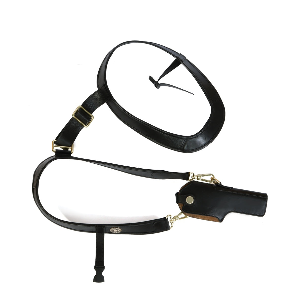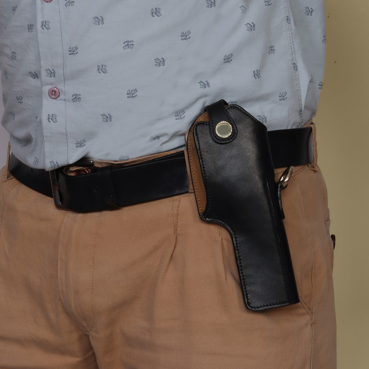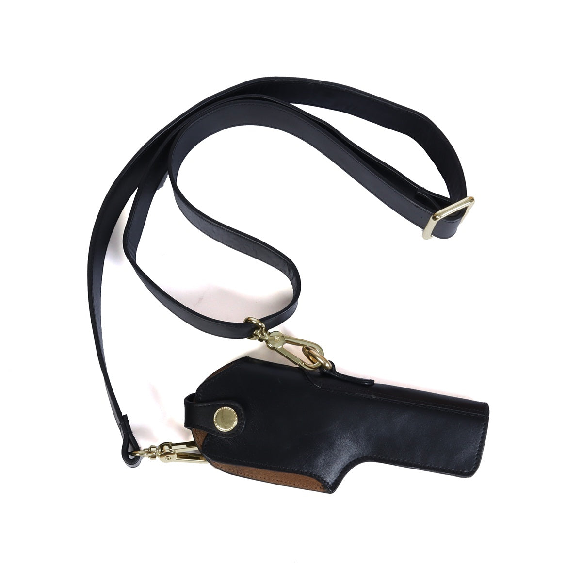 Introducing the Triple-Style-Carry in Black Genuine Leather! Crafted precisely for .30 bore pistols. it offers three style options: on the belt, cross body, and across shoulders. It can be made to order for any weapon you need. Enjoy the convenience and luxury of carrying your ammo in style!