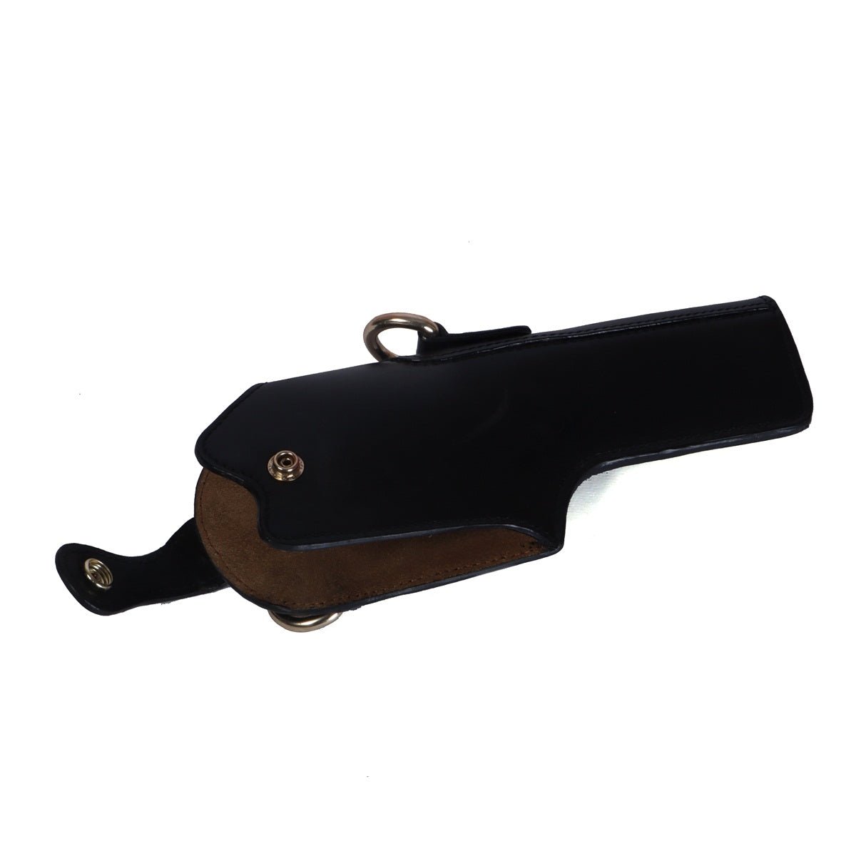 This make-to-order cover is constructed from black genuine leather, exuding a sense of elegance and durability that sets it apart. Designed with practicality and style in mind, this ammo cover boasts a strong and wide adjustable shoulder strap. The strap can be easily tailored to your desired length, ensuring a comfortable fit during transport. Whether you're heading to the range or engaging in tactical operations, this cover allows you to carry your ammunition with ease and confidence. To secure your ammunition, the cover is equipped with a strap snap button closure. This reliable fastening mechanism ensures that your .30 bore pistol ammo remains securely in place, even during rigorous movement or demanding situations. In addition to the shoulder strap, the cover incorporates a reinforced belt loop on the back, providing you with an alternative attachment option. This enables you to conveniently attach the cover to belts or tactical gear, ensuring quick access to your ammunition when you need it most.