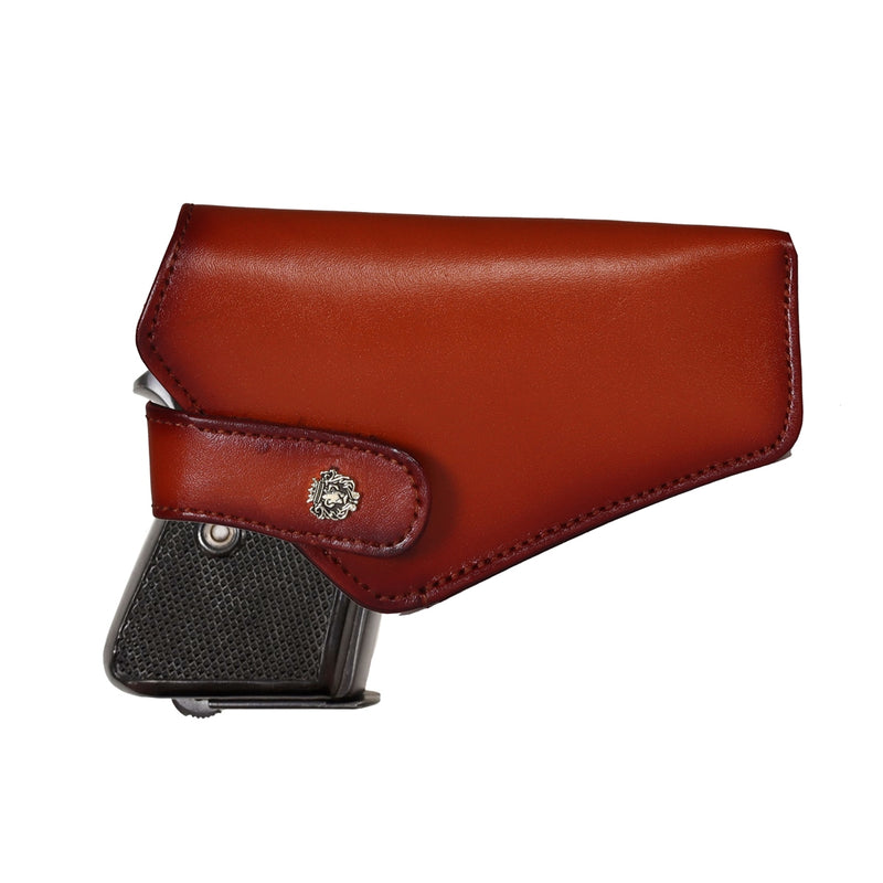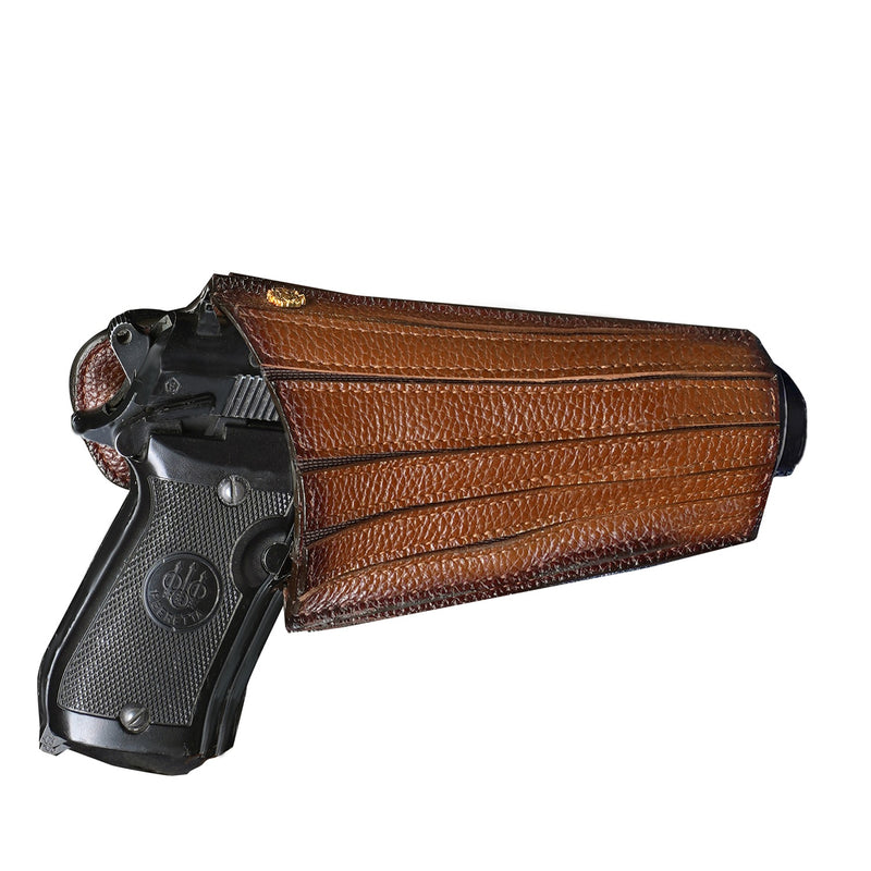 Upgrade your .45 Handgun with this luxurious exotic pistol cover. Hand-crafted with premium, high-quality grey leather and adorned with a signature lion mini logo, this cover is both stylish and functional. The unique stingray fish leather design is not only water and scratch-resistant but also adds a natural shine to your firearm. Its adjustable elastic closure and metal loop make for easy and secure carrying. Elevate your firearm with this elegant and one-of-a-kind choice.