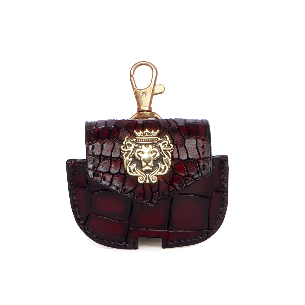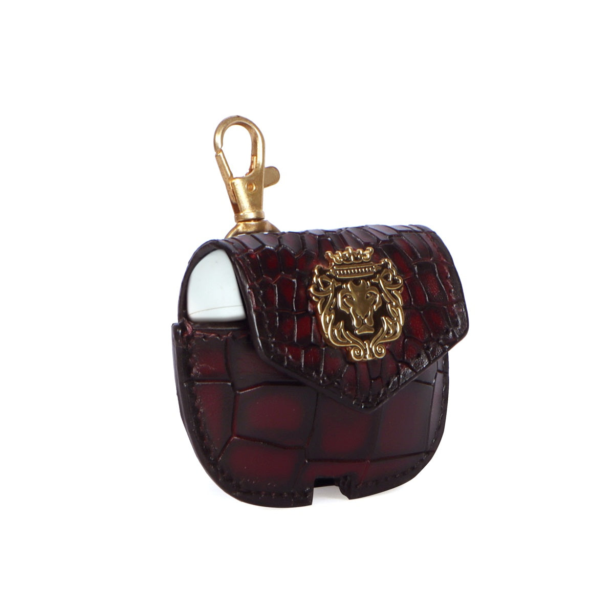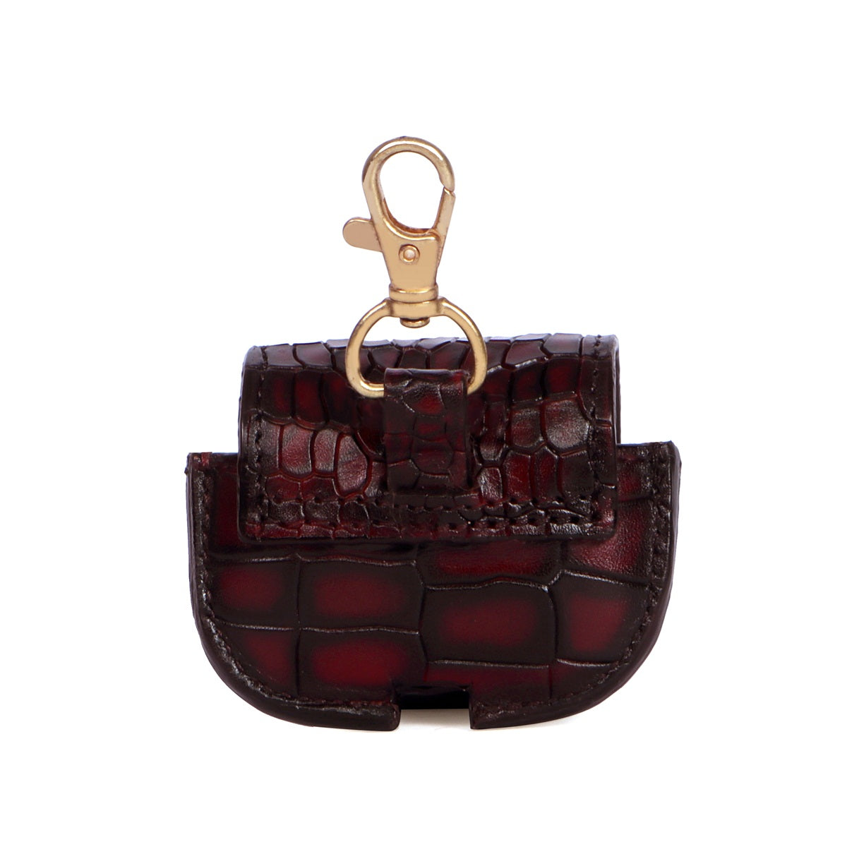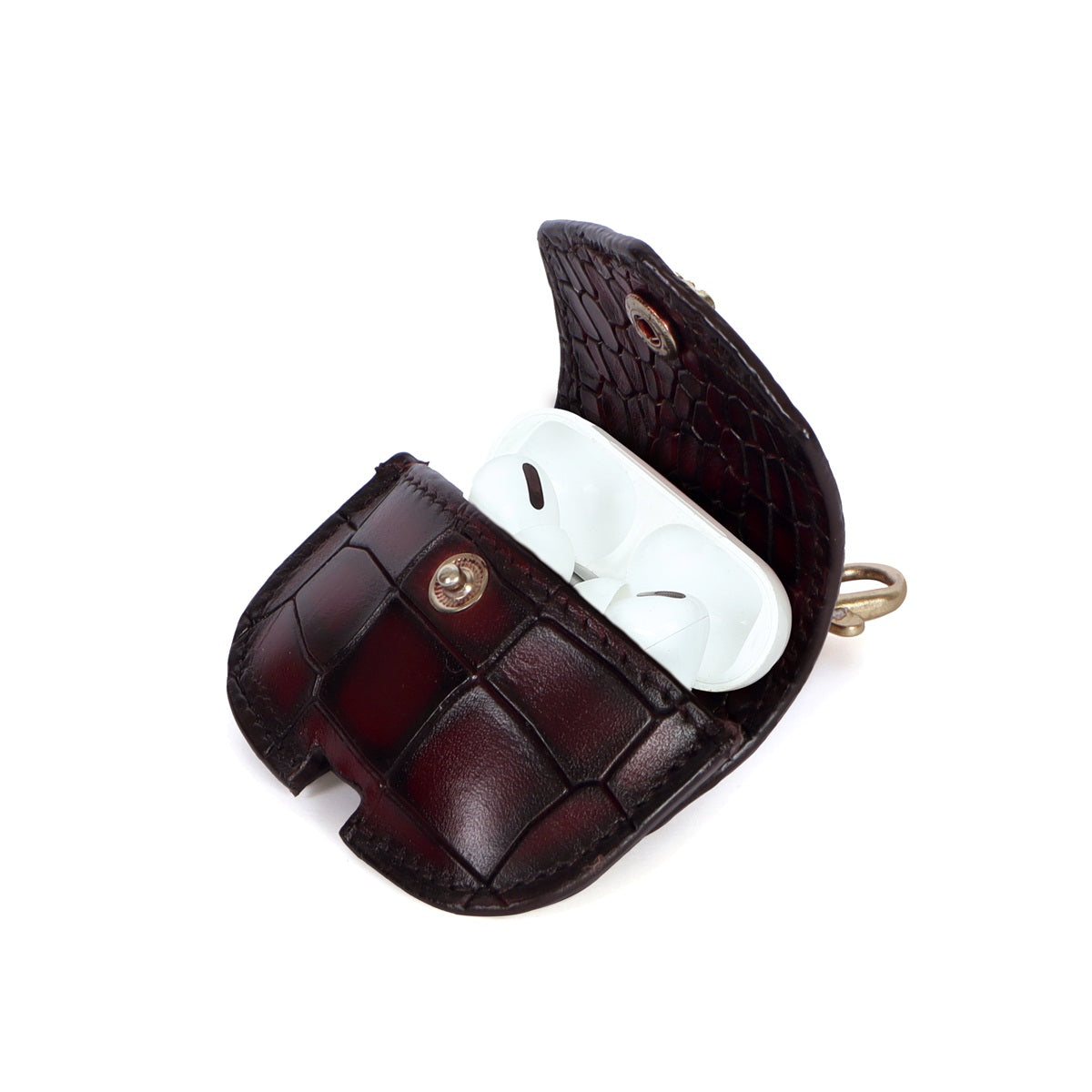 Air-Pods Smokey Wine Croco Deep Cut Textured Leather