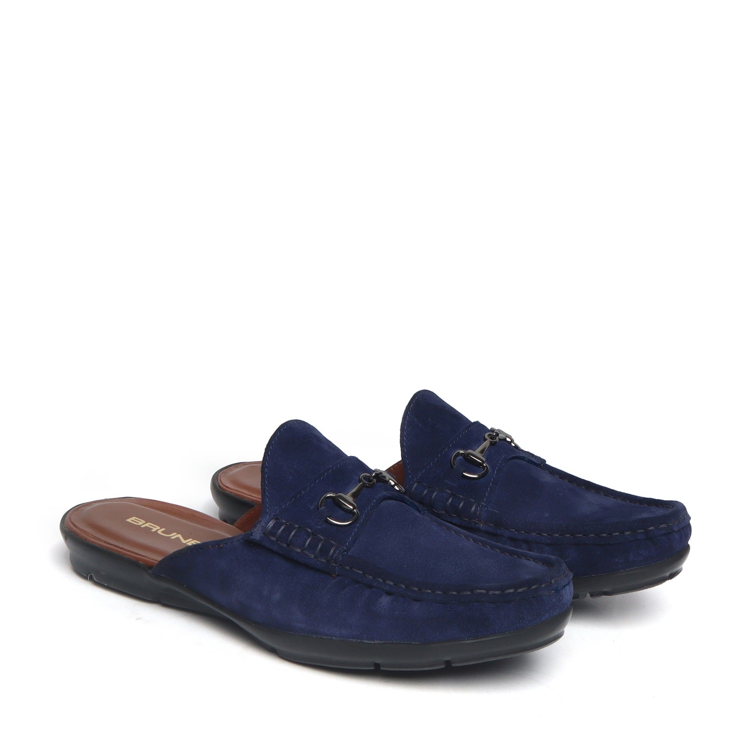 Blue suede leather formal loafer mules with horse-bit designer buckle, make it as elegant as any BRUNE & BARESKIN shoe would be but still offer the easy-access opening to the wearability and usability. Wear this shoe like a slipper. These are made keeping in mind the style and convenience. This is perfect footwear in today's work-from-home scenario, as it is completely formal from the front for your video conferences but very convenient from the rear. Wear it with Semi Formals to Formals to Casuals at parties and get-togethers.
