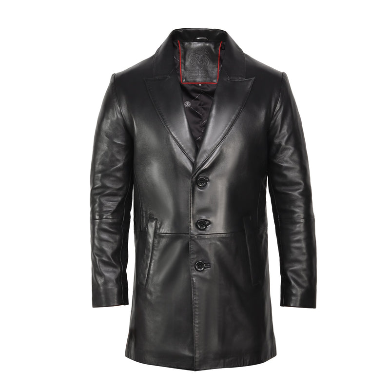 Premium Long Blue Leather Jacket with Shirt-Style Collar