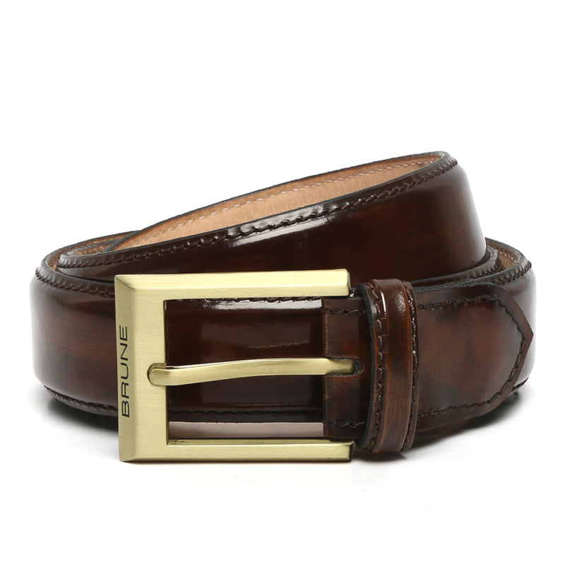 Get ready to look dashing! Stand out from the regular crowd with these special patent leather belts. This dark brown patent leather formal belt for men ensures to keep your comfort and style high. The gold finished buckle enhances its appearance further. This attractive belt ranks high on the latest Formal style to offer you a well deserved popularity. It can easily be teamed up with Suits or any tee and chinos for a carefree macho look. The renowned brand of Brune & Bareskin is widely trusted by men all over India for their wide range of premium quality leather belts that rank high on durability and style factors.