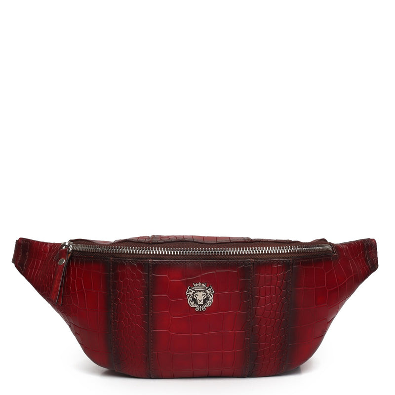 Chest Bag Fanny Pack Bag in Smokey Wine Croco Textured Leather