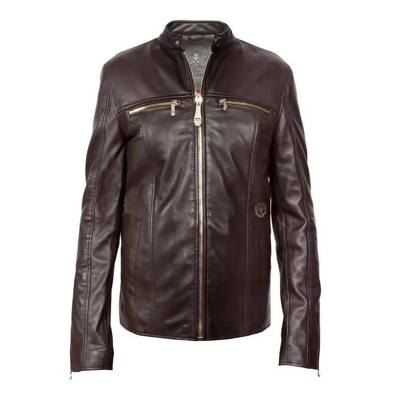 The tan color looks very impressive, especially in leather. Dress to impress with this classic leather jacket from Brune & Bareskin. This leather jacket features a ban collar design along with gun metal zip pockets on the front. Brune & Bareskin assemble the product according to the expectations of its esteemed customers. The slim fit jacket ensures it fit properly according to your body structure. It is amazing to carry this jacket with a T-shirt, washed jeans, and casual shoes for a relaxed look.