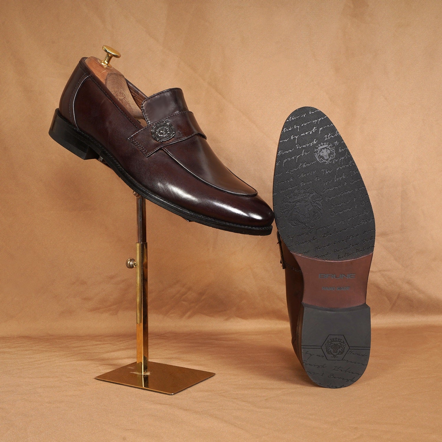 Dark Brown Formal Slip on with Gun Metal Lion Logo