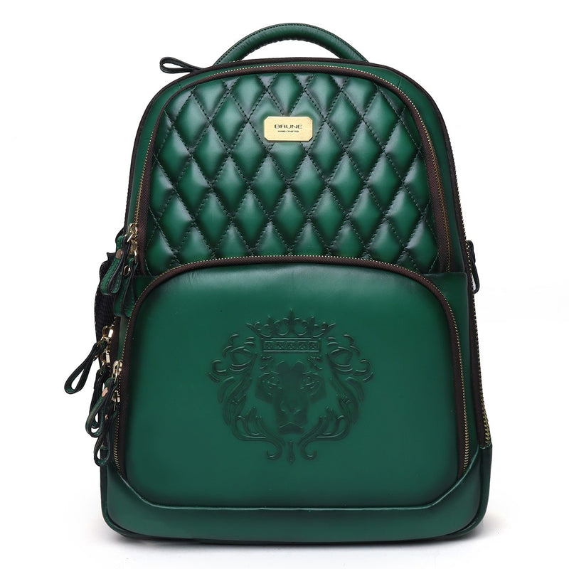 Diamond Stitched Backpack Tan Leather with Embossed Lion Logo by Brune & Bareskin