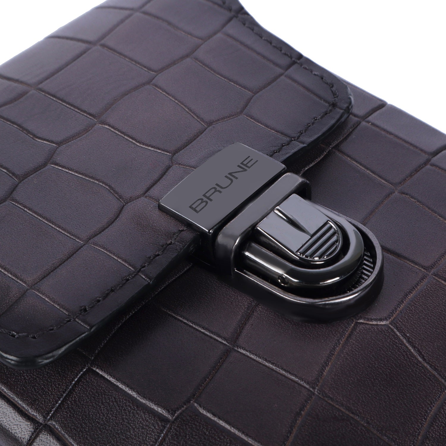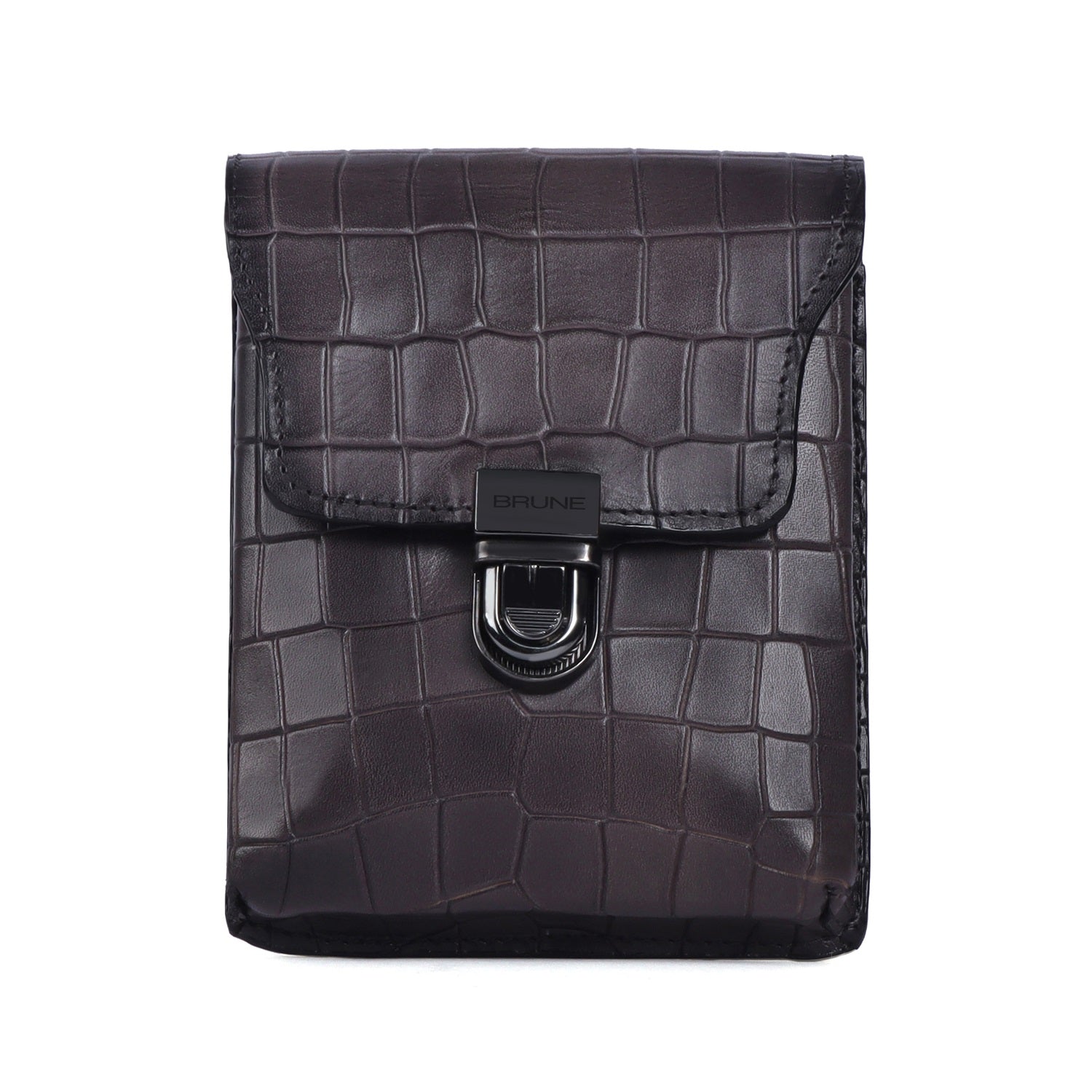 Secure your pens in style with this Exclusive Pen Holder in Grey Croco Textured Leather! This grey pen holder is the perfect accessory to your professional wardrobe - proudly displaying the Brune & Bareskin Brand logo. Durable croco textured leather offers a comfortable feel and the push button clip buckle closure keeps your pens secure. Carry multiple pens in one central place - Perfect for both businessman and women, step up your professional look with this grey, textured leather pen holder.