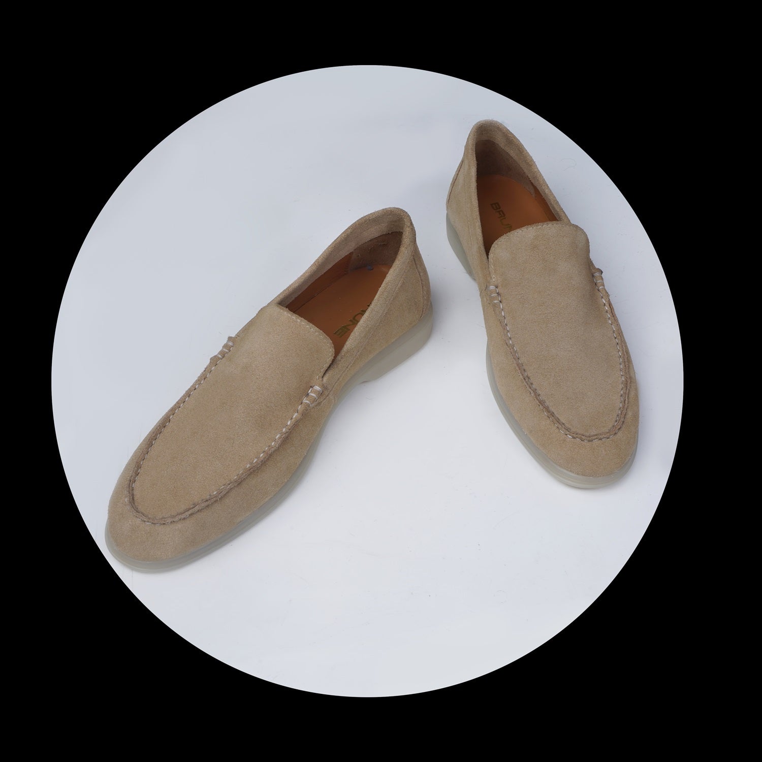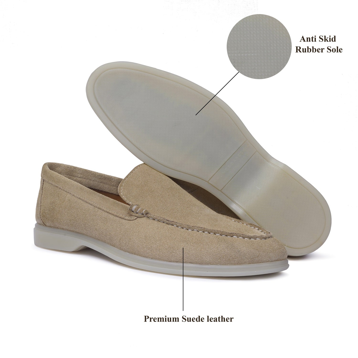 Experience the art of luxury with these sophisticated men's loafers by Brune & Bareskin. Exquisitely crafted from beige suede leather, these lightweight slip-ons offer maximum comfort with their well-designed construction and rubber sole for better grip. The perfect shoes for summer walks, enjoy the feel of luxury and exclusivity every time you wear them. This is a must have pair in your footwear collection. You can get it customized in your favorite color shade with Initials with our "BRUNE & BARESKIN" services.