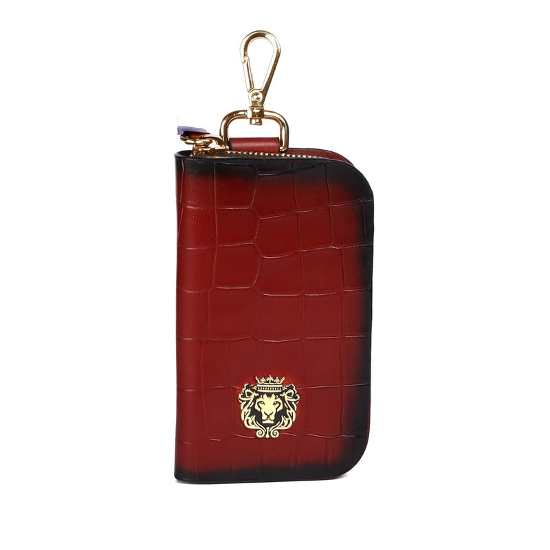 Luxurious Hanging Loop Car Key Case with Croco Textured Green Leather