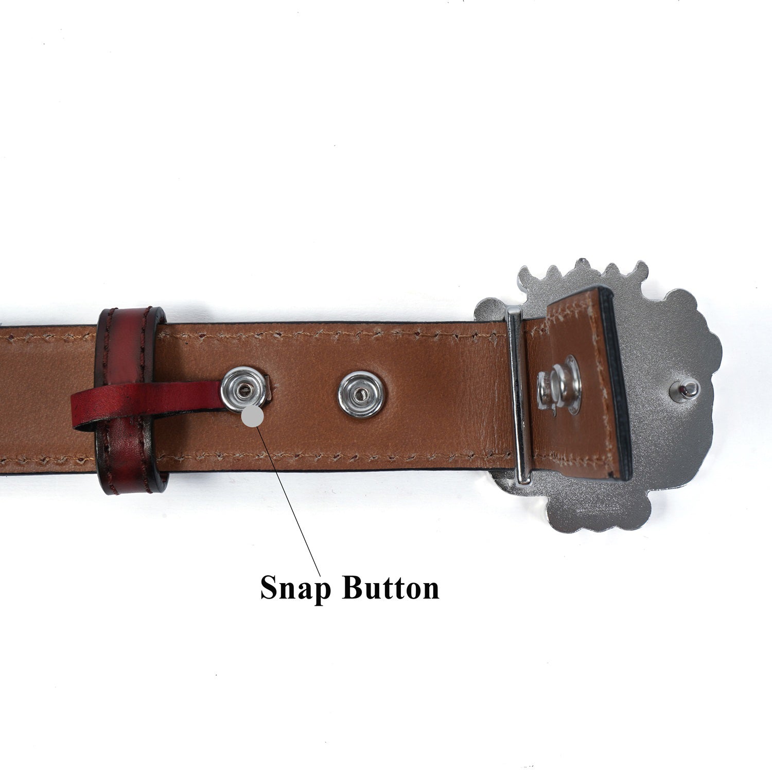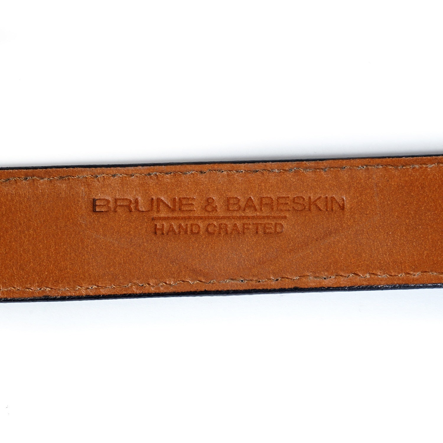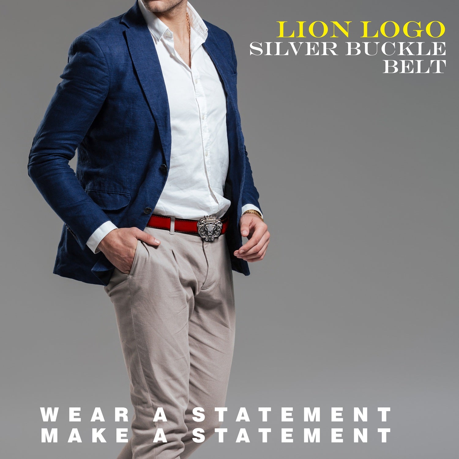Add a touch of luxury to your look with the Trademark Logo Buckle Belt in wine genuine leather by Brune & Bareskin. This belt features a signature lion brand logo buckle and premium thick silver metal buckle that adds extra weight and quality. The burnished wine genuine leather strap is removable and can be easily changed to match your outfit, while the convenient snap buttons opening makes this belt both stylish and functional. Elevate your style with this premium quality belt.