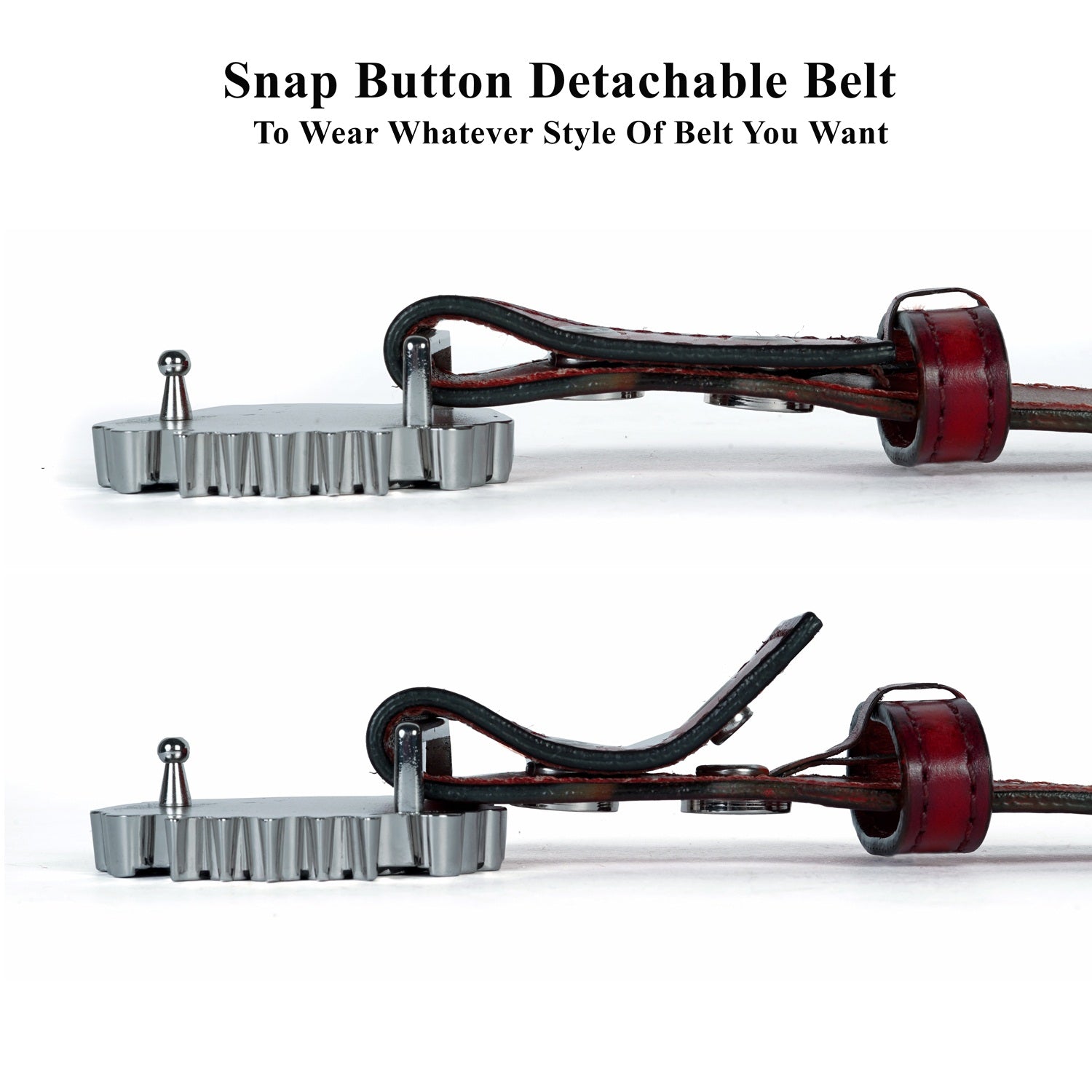 Detachable Trademark Logo Buckle Belt in Burnished Wine Genuine Leather