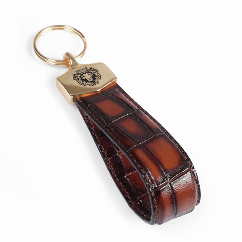 This elegant croco embossed leather keychain is a stylish travel accessory. The wine color provides a very chic look. The gold finish fittings compliments its overall color. Brune & Bareskin signature lion logo on the center looks very elegant. You can also get it customized especially for you with your name initials and favorite color.