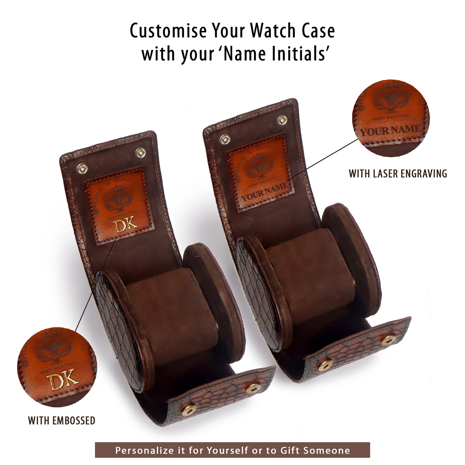 Waoooo... It's an awesome Deep cut leather watch rolls by BRUNE & BARESKIN. You might have seen many watch covers in your life before, it is one of the most sophisticated & luxurious watch rolls you can buy in genuine leather. It is safe, secure & stylish to keep watch in it & has two detachable pallets to fix watch in cover. Buy this branded watch roll in your favourite color as we provide color customization & name Initials options also.