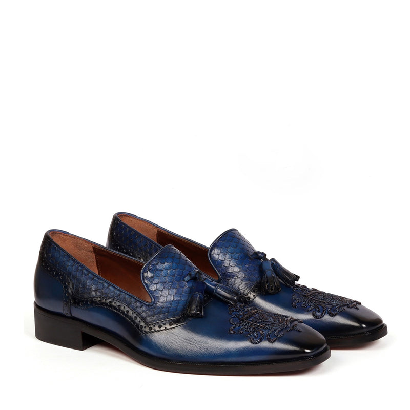 Zardosi Toe Slip-On Shoe For Men Black Snake Textured Tassel Leather