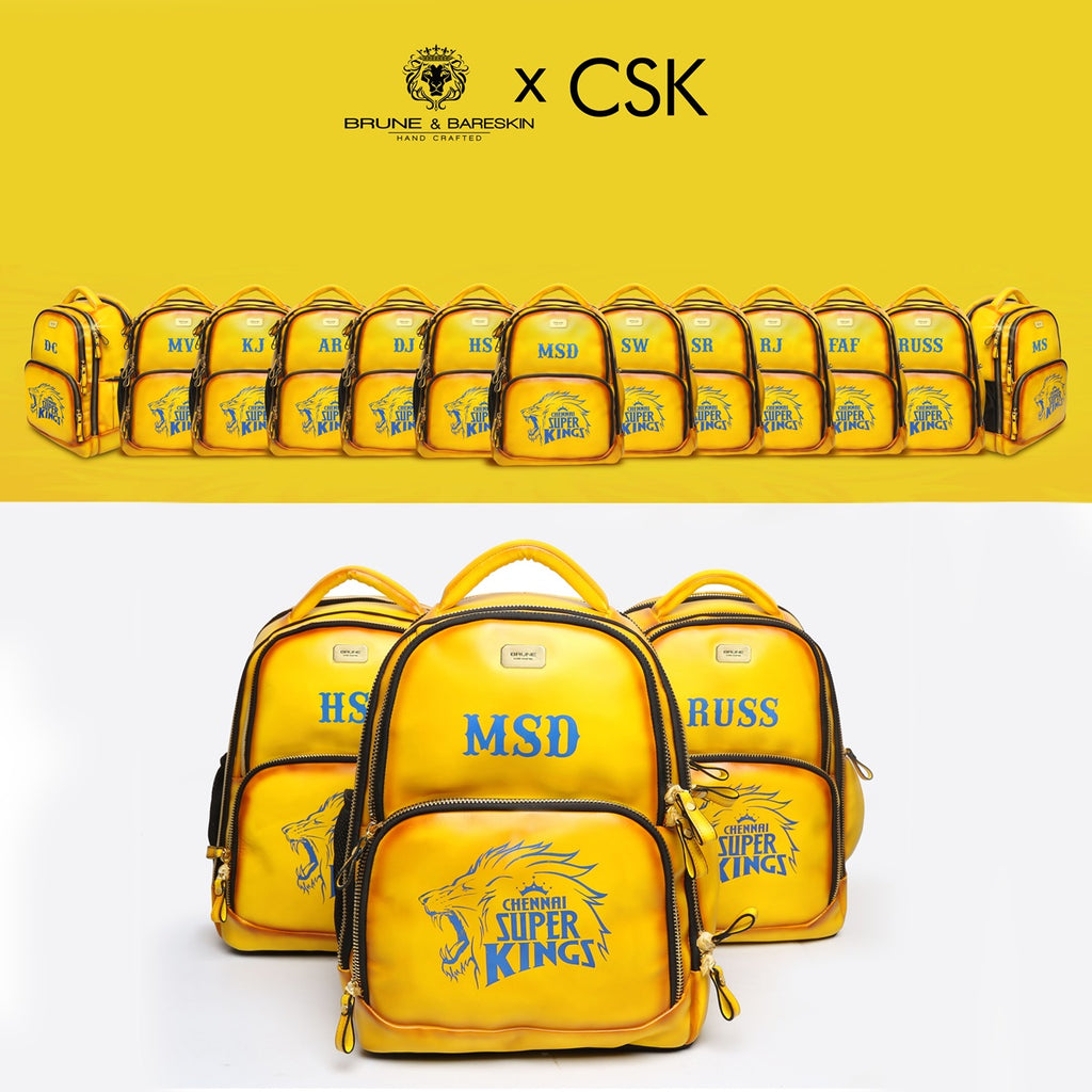 We provides the Genuine Leather Backpacks to CSK in their Yellow Jersey Color. All the bags are personalized with the name initials of the players.