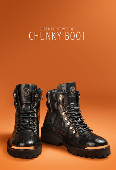Step into sophistication and luxury with our Cow Boy Cuban Heel Black Croco Textured Leather...