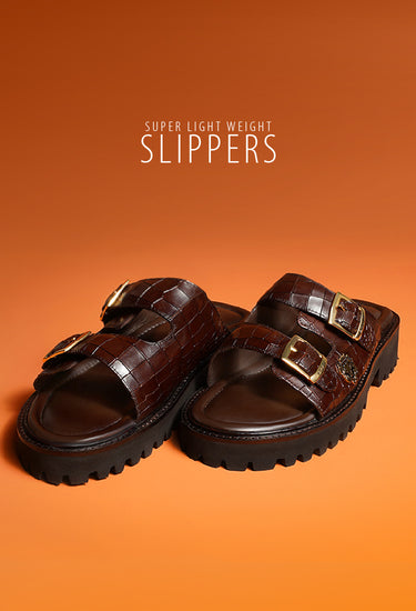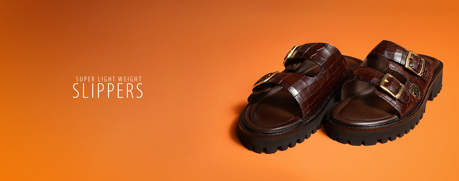 Say goodbye to uncomfortable slippers with these Comfortable Broader Toe Strap Leather Slippers from Brune...
