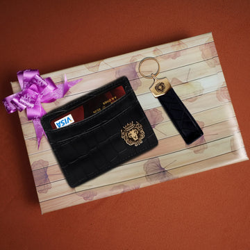 This premium quality combo pack includes a stylish tan genuine leather card holder and keychain,...