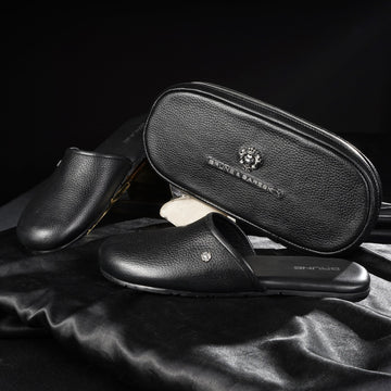Step up your accessory game with our textured leather slipper & pouch, detailed with a...