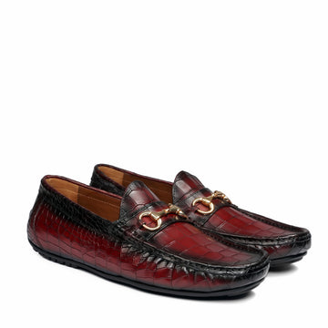 Elevate your look with our Croco Textured Driver Loafer Shoe in Wine Leather, crafted with...