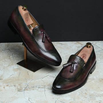 This rich wine hand weaved leather slip-on is a must have for fashion forward folks....