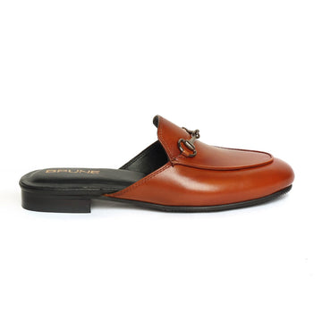 TanĀ leather formal mules with apron toe and designer horse-bit, makes it as elegant as any...
