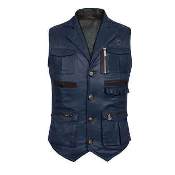 Brune & Bareskin's warm and stylish leather vests with multiple front pockets are perfect for...