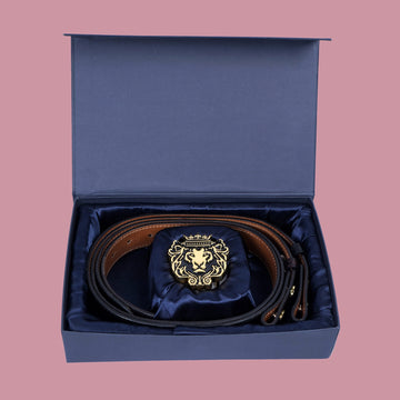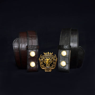 Elevate your style with the Trademark Lion Logo Golden Buckle Belt and 2 Leather Straps....