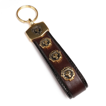 Brune & Bareskin's Triple Metal Lion Brown Keychain is a luxe, customizable accessory crafted from...