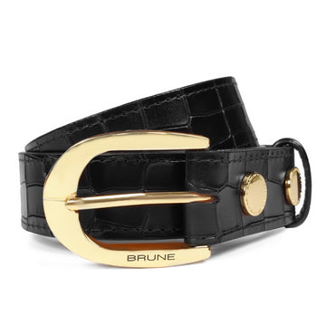Expertly crafted by Brune & Bareskin, this black croco embossed belt is designed for both...