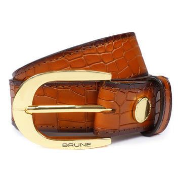 Expertly crafted by Brune & Bareskin, this tan patina finish croco embossed belt is designed...