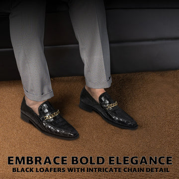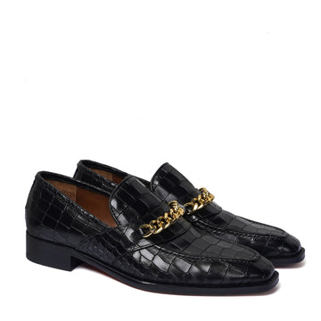 The black deep cut croco textured leather loafers by Brune & Bareskin are a luxurious...