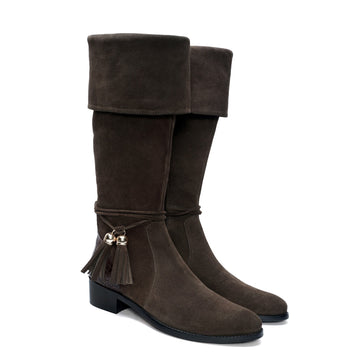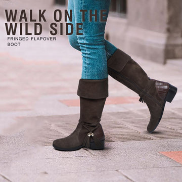 Introducing our Fold Down Suede Leather Tassel Long Boots - the perfect blend of style...