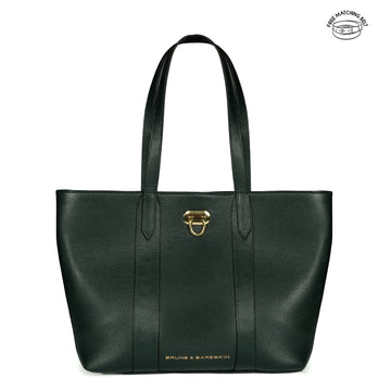 Made from premium textured green leather, this handbag boasts a soft, smooth finish with subtle...
