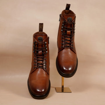 Experience timeless craftsmanship with our Hand-Weaved Leather Boots with Golden metal lion logo & metal...