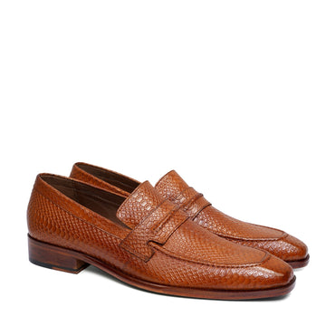 Dark Brown Deep-Cut Croco Loafers, designed with a brushed off leather strap and a signature...