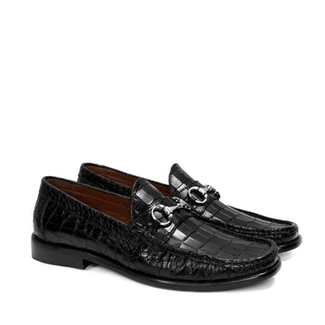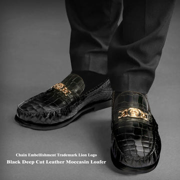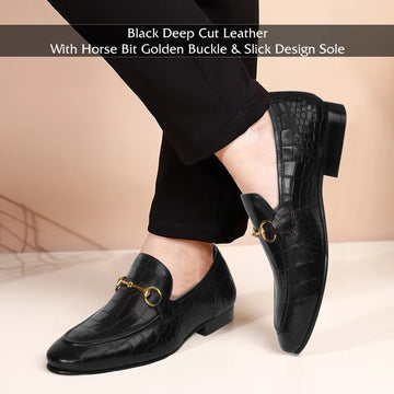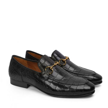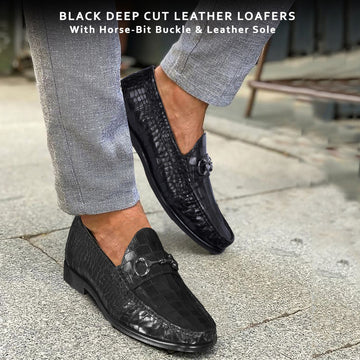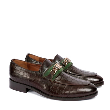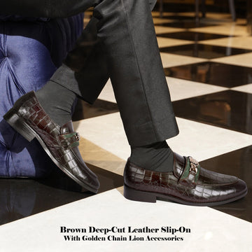 Dark Brown Deep-Cut Croco Loafers, designed with a brushed off leather strap and a signature...