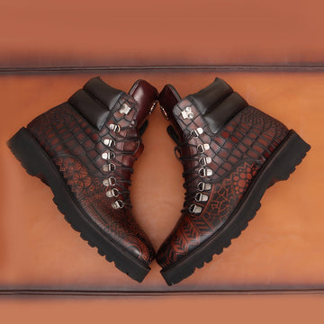 It feels great while stepping out in branded shoes. The handcrafted black croco print genuine...