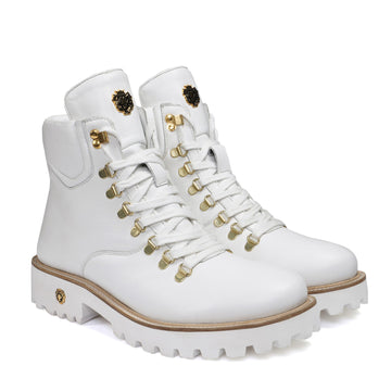 Elevate your footwear collection with these premium white full grain leather boots. Featuring a lightweight...