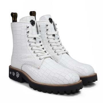 Elevate your footwear collection with these ankle premium white deep cut croco full grain leather...