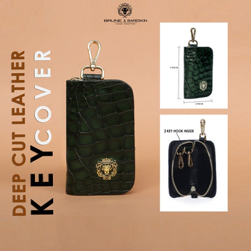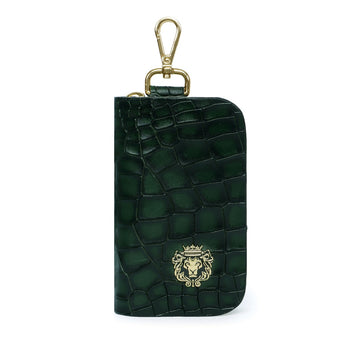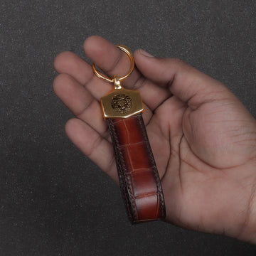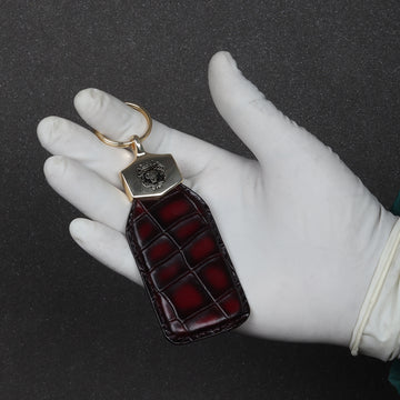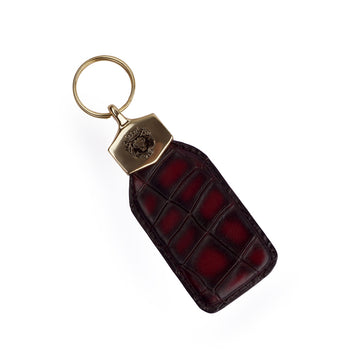 This elegant rectangular shape keychain is a must-have travel accessory. The wine croco textured deep-cut leather enhances...