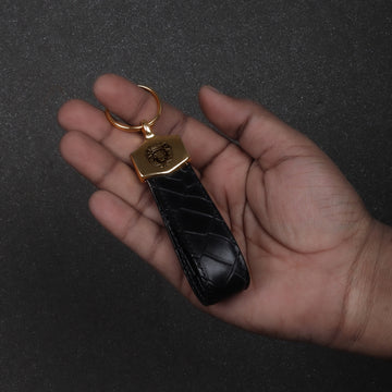 This elegant leather keychain is a stylish travel accessory. The black color leather enhances looks...