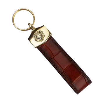 This elegant croco print leather keychain is a stylish travel accessory. The brown color leather...
