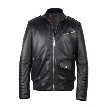 Step into bold style with this Metallic Finish Leather Jacket, designed to make a statement...