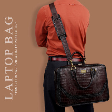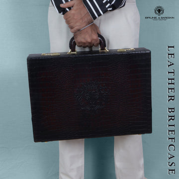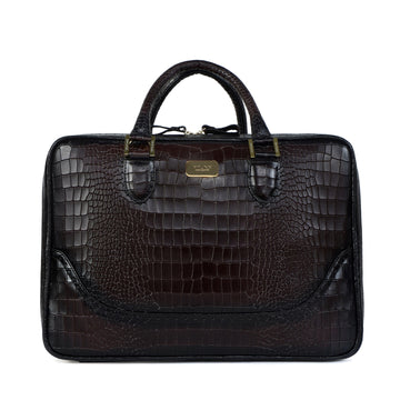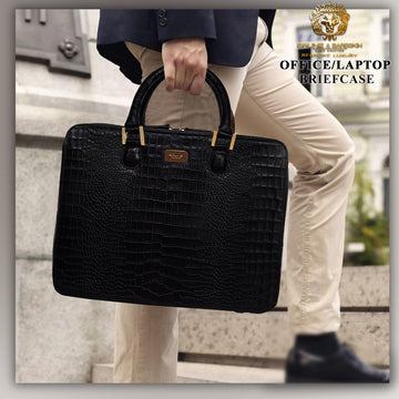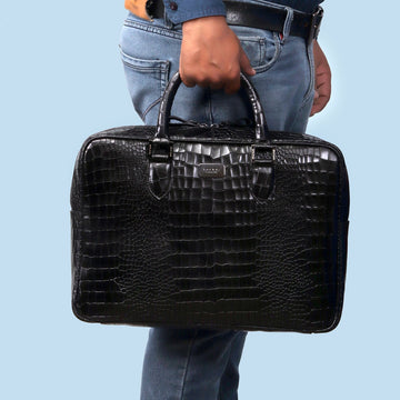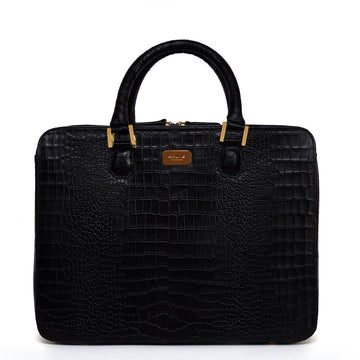 Enhance your business wardrobe with this opulent and alluring black croco textured leather office briefcase...