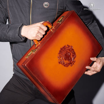 The Tan Italian leather office briefcase provides the perfect gentleman look. The embossed lion logo...