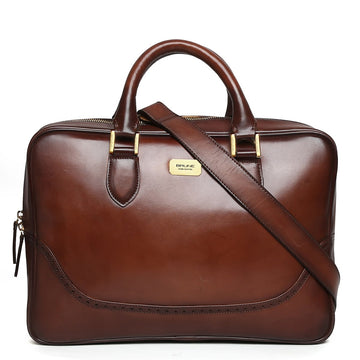 The brown Italian leather office laptop briefcase provides the perfect gentleman look. The sleek brogue...