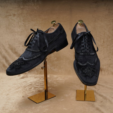 Experience exquisite craftsmanship with these Wingtip Zardosi Black Lace-Up Wedding Formal Shoes! The intricate cut...