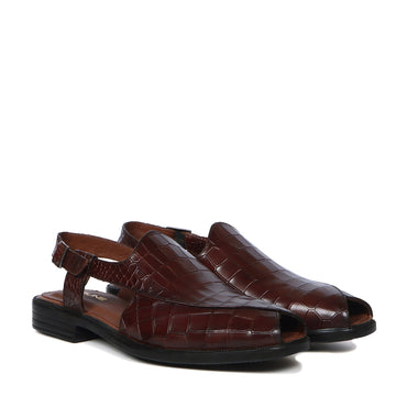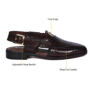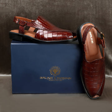 Brune & Bareskin dark brown leather peshawari is a type of footwear designed for men...